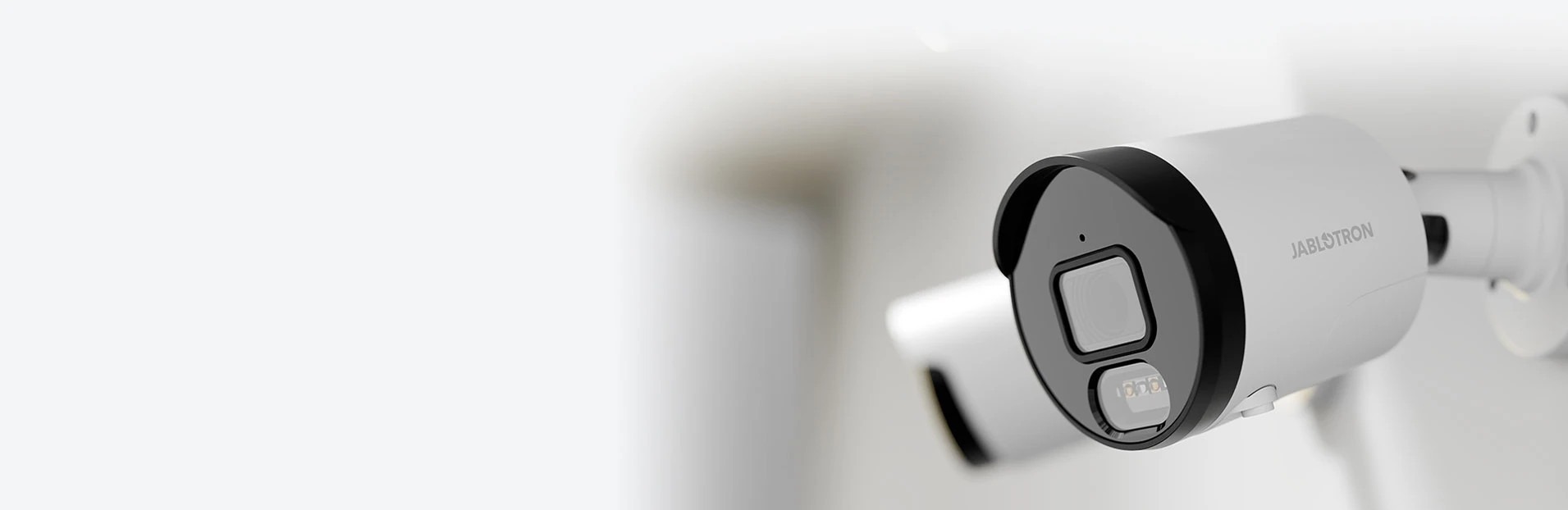 Venkovní kamera v provedení bullet má integrovaný reproduktor, mikrofon a barevné LED diody. Umožňuje uživateli spustit audio a vizuální upozornění v případě potřeby z aplikace MyJABLOTRON.