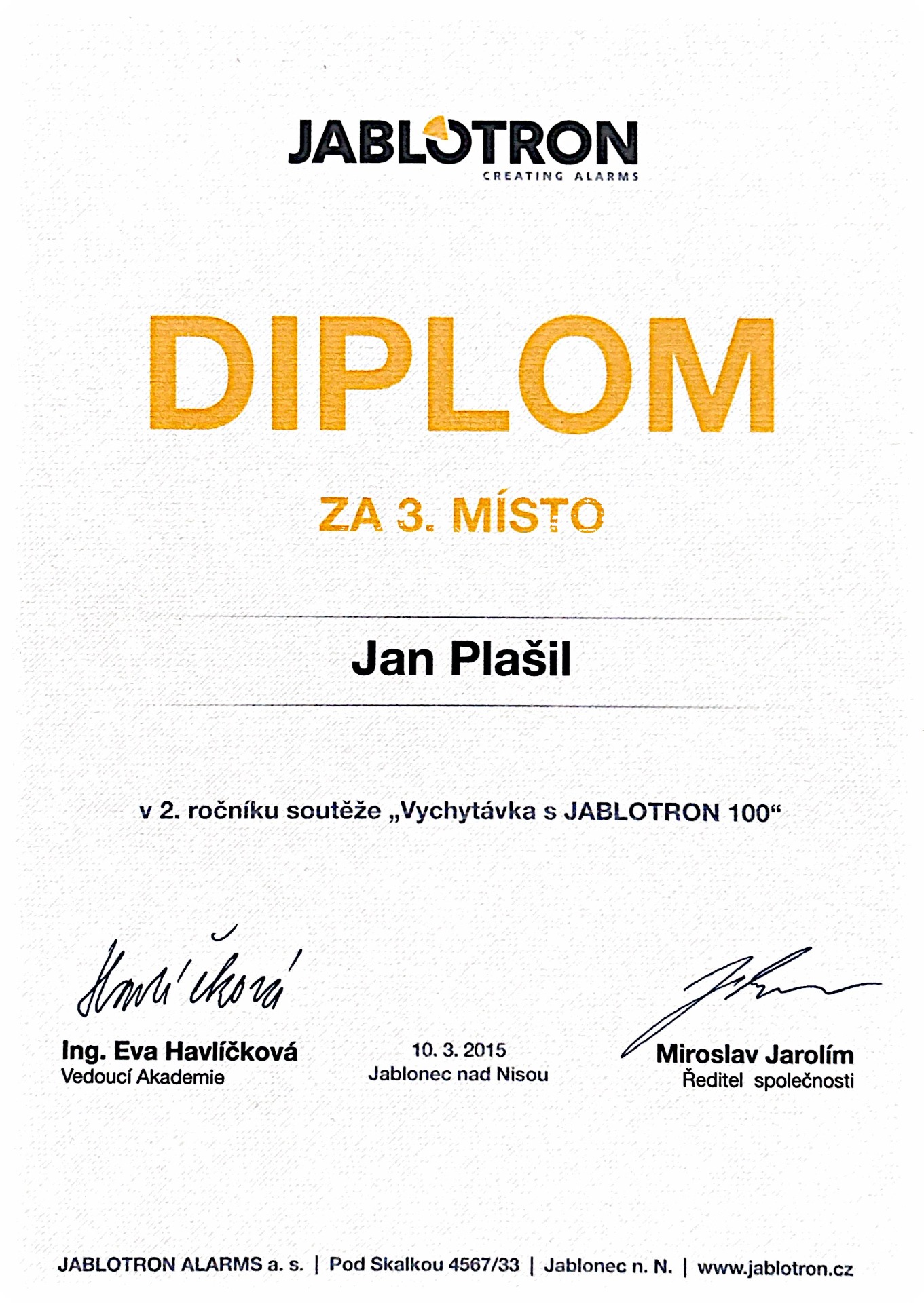 Za toto technické řešení jsme byly i v minulosti oceněni společností JABLOTRON v soutěži "Vychytávka s JABLOTRON 100".